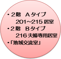 - ご夫婦専用居室…ご夫婦専用居室には、全設備完備(キッチン、浴室脱衣場、洗面台、トイレ、収納)